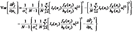 采用式和對可靠性試驗靈敏度進(jìn)行估計是近似的,它的取值在樣本容量較小時有很大的隨機(jī)性,但依據(jù)大數(shù)定理,上述兩式的估計值隨樣本容量的增加逐漸趨近于真值。為了對式和估計量的統(tǒng)計特征有清楚的了解,進(jìn)而了解重要抽樣可靠性試驗靈敏度估計方法的收斂性和精度,有必要對其估計值進(jìn)行方差分析。對式求數(shù)學(xué)期望和方差可得式和。