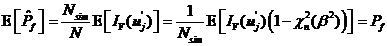 對式所示的失效概率估計(jì)值求數(shù)學(xué)期望和方差分別有以下兩式成立。